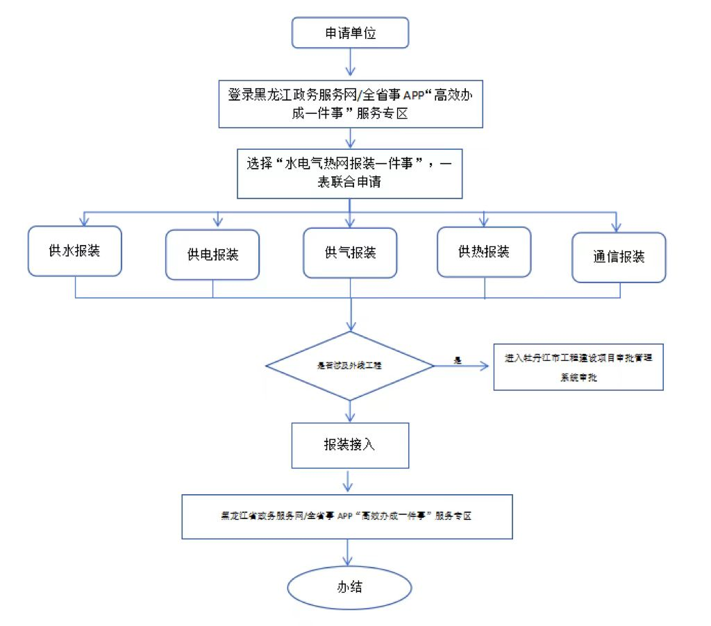 2、登錄“牡丹江市工程建設(shè)項(xiàng)目審批管理平臺(tái)”--選擇“水電熱氣訊聯(lián)合報(bào)裝服務(wù)流程”